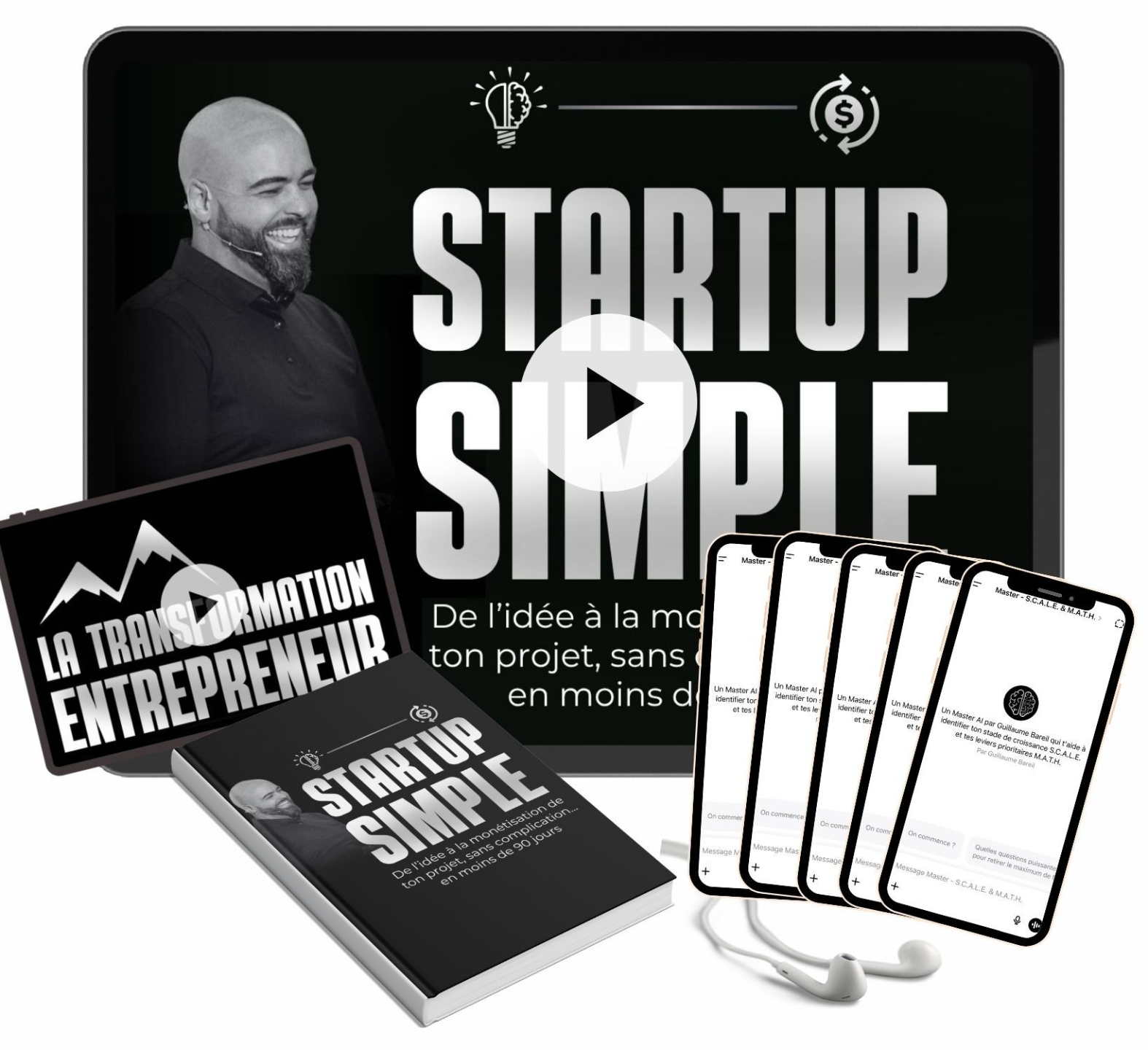 "Startup Simple" est le plan le plus simple, rapide et éprouvé pour créer, lancer et monétiser une nouvelle offre en 10 jours... avec l’aide d'un entrepreneur d'expérience et l’IA